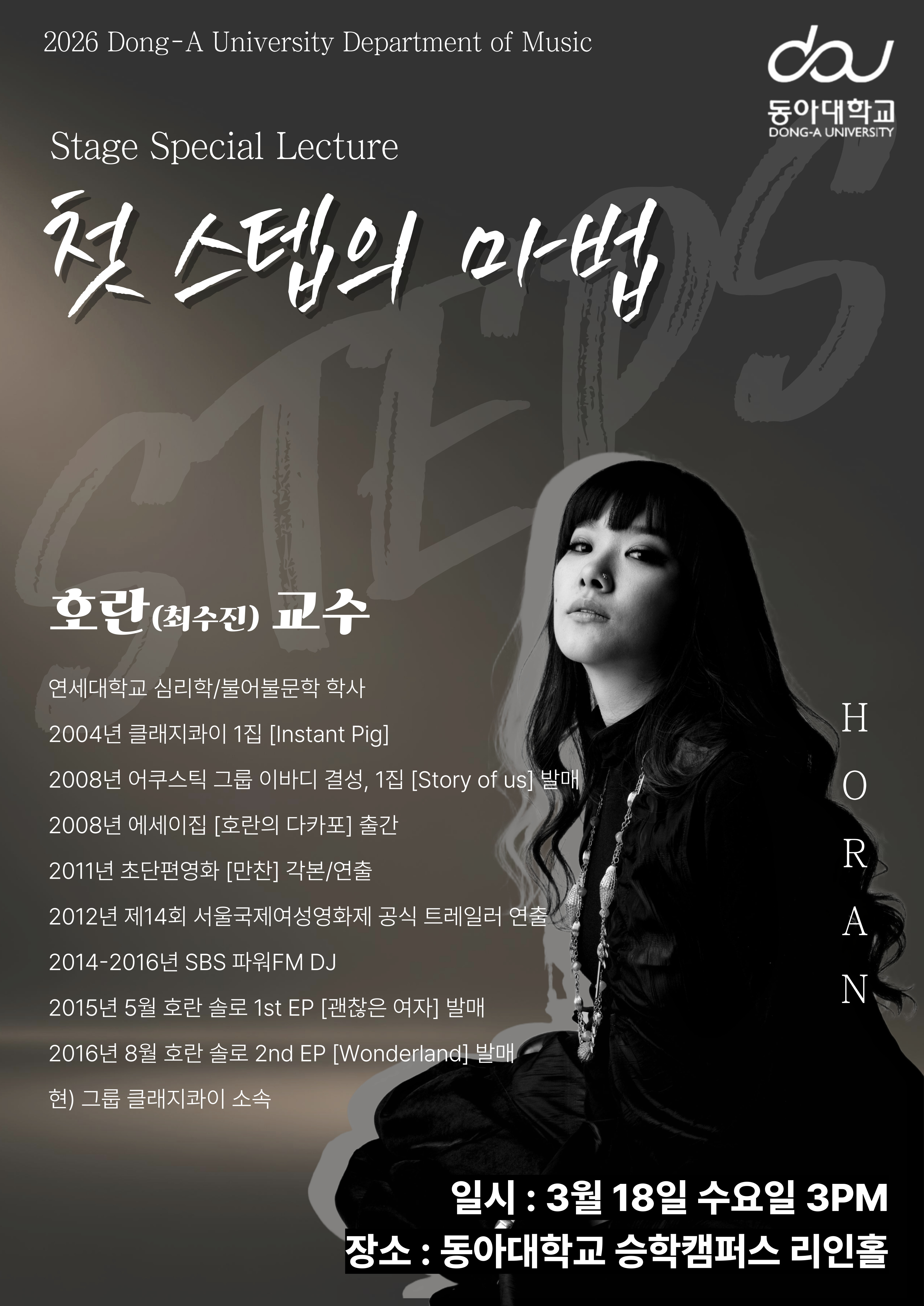 메인으로 이동 SNS 목록열기 FACEBOOK 공유하기 TWITTER 공유하기 BLOG 공유하기 SNS 목록닫기 인쇄 url 복사 메인비주얼 동아대학교 음악학과노력이 머무는 곳, 재능으로 채워라! 이전 장면 1 다음 장면 정지 재생 팝업존 1 이전 장면 정지 재생 다음 장면 학사일정 교과과정 콩쿨및오디션안내 자료실 학과소식 오시는길 교수소개 새로운 소식 공지사항 더보기 공연안내 더보기 취업 및 자격증 더보기 학과소개 Department of Music 날로 높아져가는 한국 음악인들의 위상과 한국 음악시장의 다변화에 맞추어 예술성과 창의성을 두루 겸비한 음악가로서 음악 산업 전반에 걸친 다양한 영역에서 활동할 수 있는 음악 인재를 양성한다 학과소개 바로가기 학과 유튜브 이전 장면 다음 장면 Modal Modal